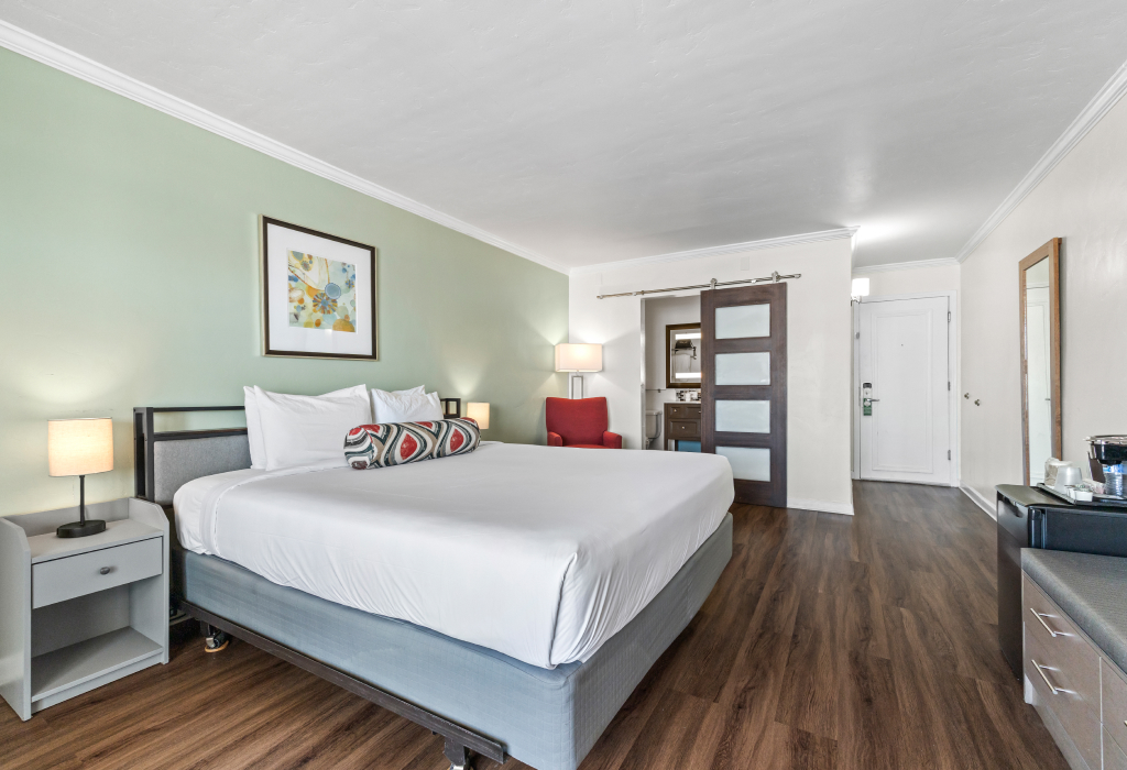 Our standard one King Bed guest room is perfect for a relaxing stay at the heart of Alameda at a great value.