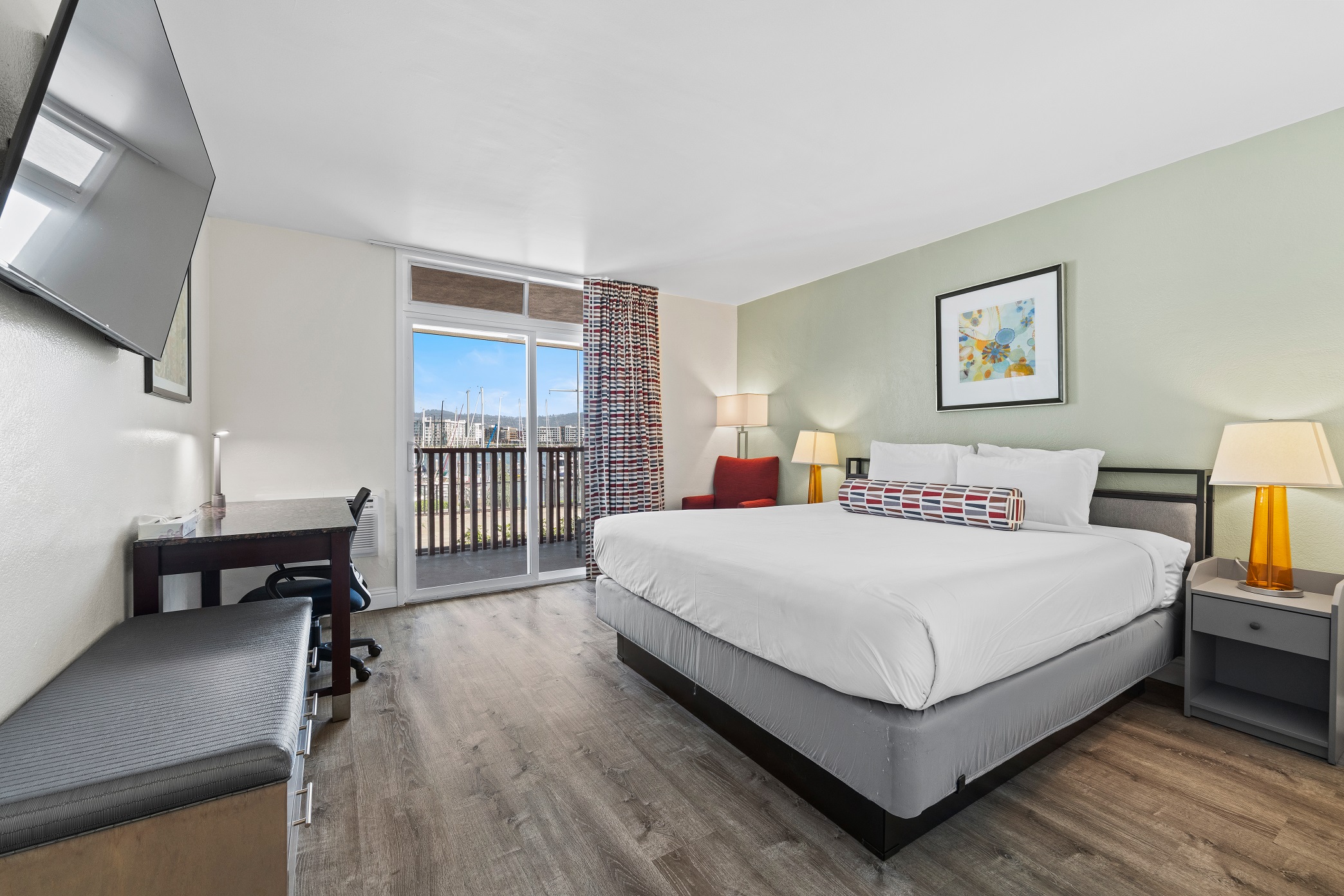 Our King Room Balcony guest room can comfortably accommodate up to three guests. This non-smoking room features beautiful water views from a private balcony. It is equipped with complimentary WiFi, a TV with premium cable channels, a refrigerator, a coffee maker, personal climate control, an iron and ironing board, a safe, and a work desk with a telephone. The private bathroom includes fluffy towels, a hair dryer, and complimentary toiletries.